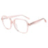 Su forma cuadrada de bordes redondeados aporta equilibrio y favorece diferentes tipos de rostro, convirtiéndola en una opción versátil tanto para uso laboral como para el día a día. La transparencia del material aporta luminosidad al rostro y un aspecto más fresco y delicado.